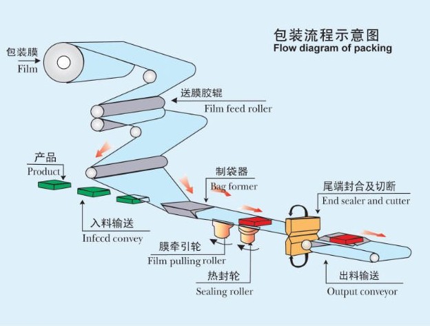 枕式包裝機(jī)包裝過(guò)程示意圖